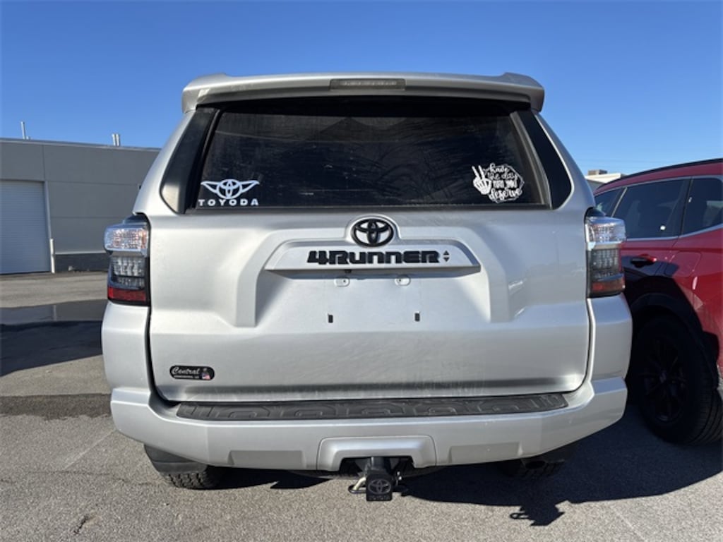 This 2022 Toyota 4Runner comes equipped with 17" 6-Spoke Alloy Wheels, 3.727 Axle Ratio, 4-Wheel Disc Brakes, 8 Speakers, ABS brakes, Air Conditioning, Alloy wheels, AM/FM radio: SiriusXM, Anti-whiplash front head restraints, Apple CarPlay/Android Auto, Auto High-beam Headlights, Brake assist, Bumpers: body-color, Driver door bin, Driver vanity mirror, Dual front impact airbags, Dual front side impact airbags, Electronic Stability Control, Emergency communication system: Safety Connect with 1-year trial, Exterior Parking Camera Rear, Fabric Seat Trim, Fabric-Trimmed 50/50 Split Fold-Flat 3rd Row, Front anti-roll bar, Front Bucket Seats, Front Center Armrest, Front fog lights, Front reading lights, Front wheel independent suspension, Heated door mirrors, Illuminated entry, Knee airbag, Leather Shift Knob, Leather steering wheel, Low tire pressure warning, Occupant sensing airbag, Outside temperature display, Overhead airbag, Overhead console, Panic alarm, Passenger door bin, Passenger vanity mirror, Power door mirrors, Power driver seat, Power steering, Power windows, Radio: Audio, Rear anti-roll bar, Rear seat center armrest, Rear window defroster, Rear window wiper, Remote keyless entry, Roof rack: rails only, Security system, Speed control, Speed-sensing steering, Split folding rear seat, Spoiler, Steering wheel mounted audio controls, Tachometer, Telescoping steering wheel, Tilt steering wheel, Traction control, Trip computer, Trunk Carpet, and Variably intermittent wipers.